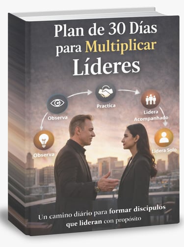 Un plan de 30 días para formar y multiplicar líderes paso a paso, con mentoría práctica, micro hábitos diarios, reuniones semanales y delegación progresiva, guiando al líder desde observar hasta liderar con autonomía.