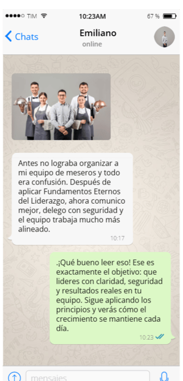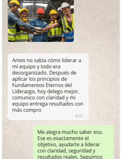“Yo vivía apagando incendios todo el tiempo y, para ser honesto, me daba miedo corregir a mi equipo. Sentía que cualquier comentario podía generar tensión o conflictos. Pero después de aplicar estos principios, algo cambió en mí. Por primera vez me siento seguro. Hoy delego con claridad, resuelvo conflictos sin miedo y mi equipo por fin está entregando resultados.”